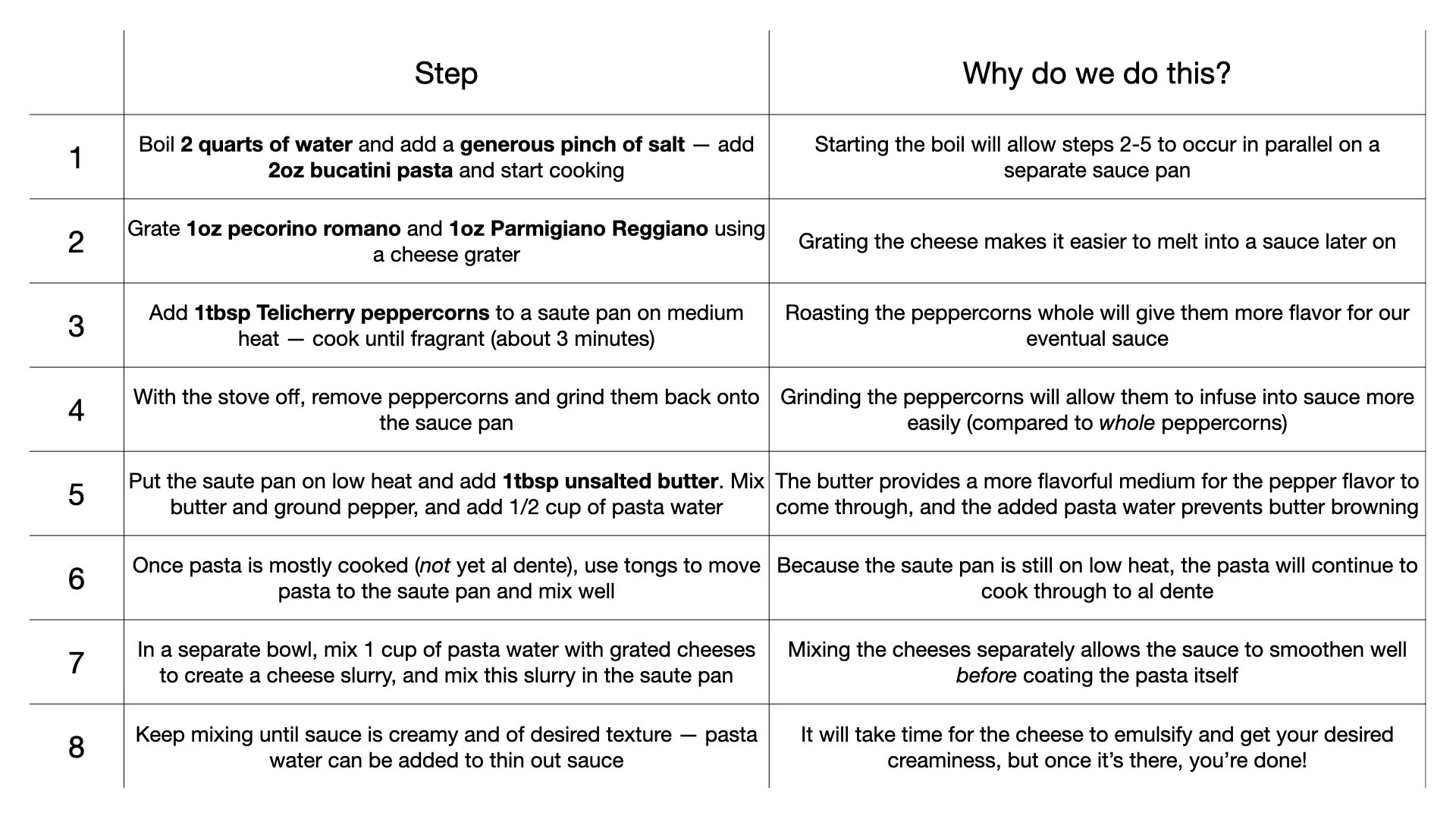 The history and sociological aspects of food also fascinate me, which is why I spend a good deal of effort learning about the origin of each ingredient and why we use it — this doubles as an intuitive method for understanding how and why specific ingredients and methods are used! Without further adieu, let’s dive into a recipe with just five ingredients but a world of complexity under the surface — cacio e pepe!
